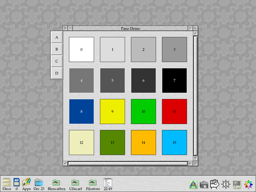 If one were to survey members of the RISC OS community to find out what a “toolbox” looked like, the answer which would come back would probably be along the lines of “like the one in Draw”. Draw’s toolbox has been present as standard on all systems since RISC OS 2, and is still functional to this day. It’s also one of the easiest panes to implement, so let’s start by making one of our own.