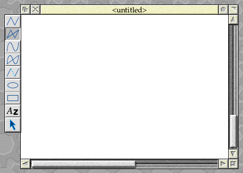 If you’re familiar with Draw, then there’s one small difference which you might notice in the behaviour of the toolbox in our example application compared to the toolbox in Draw. If a Draw window is moved off the left-hand edge of the screen, then the toolbox pane stops moving when it hits the edge and begins to retract over the parent window as seen in Figure 2.8. Only when the pane is flush with the side of the main window does it begin to move off the screen again.