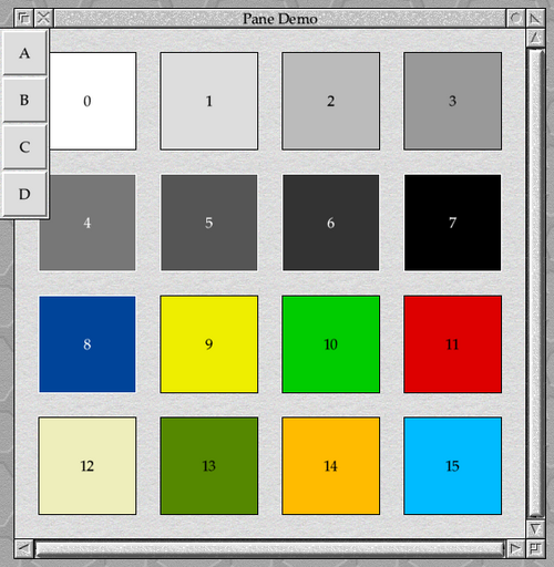 The other flag which we have set is Pane, which corresponds to the ‘window is a pane’ flag at bit 5 of the window flags. The Programmer’s Reference Manual is a little vague about what this flag does, but most developers will probably have been disappointed to discover that what it doesn’t do is cause the window follow its parent around the screen automatically! In fact it does a few important things, which we’ll discuss later in this chapter.