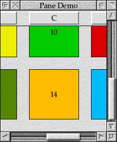 To keep the pane’s contents in alignment with that of the main window, we will need to ensure that its scroll offsets are updated correctly whenever we change its position in PROCposition_toolbar. We only want the pane to track the main window’s horizontal scrolling, so we can simply copy the X scroll offset from the main window block to the pane.