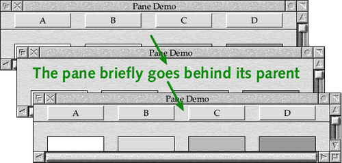 The difference described in the previous section can matter a lot but, because of a small improvement introduced as part of the Nested Window Manager (or Nested Wimp), only with versions of the Window Manager prior to its release. A couple of the changes documented in the Nested Window Manager Functional Specification are “Redraw Optimisation” and improvements to the “Invalid Rectangle Handling”. Between them, these have a big impact on the handling of panes.