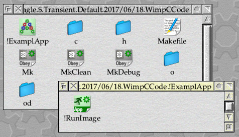 Our new application directory can be opened up by double-clicking on it while holding down Shift, which should reveal an empty directory. Double-clicking on the Mk TaskObey file should build the application as usual – except that the resulting Absolute file will be called !RunImage and placed within !ExamplApp. This can be seen in Figure 17.2.