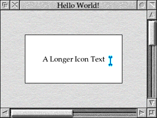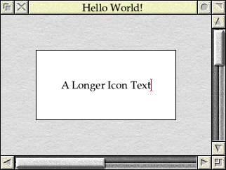 When compiled and run, the resulting window and icon will look exactly the same as they did in the previous example. However, clicking the mouse in the icon will cause it to gain the caret, which will then accept input from the keyboard as seen in Figure 15.2. Since we made the icon’s text buffer 20 bytes long by defining WIN_ICON_TEXT_LEN, up to 19 characters can be entered into the icon – the existing text can be deleted and replaced in the usual way, of course.