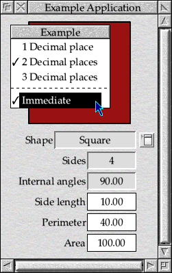 With all of these changes in place, our application’s menu will have gained an Immediate entry as seen in Figure 28.2. It will be off by default, but if ticked, the fields will update in real time as values are typed into the icons in the window.