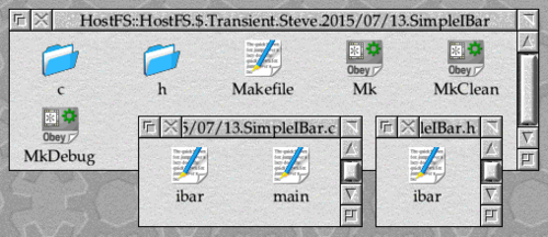 Getting our application to place its icon on the iconbar requires a few changes to the code, which will start to show the differences between BASIC and C. The iconbar icon is a self-contained part of the application, and therefore we want to keep it separate from other parts of the code. To this end, we’ll put it into a separate source file, so that other sections of the application can only see it via interfaces that we define.