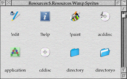 Figure 6.3: A selection of sprites which are pre-loaded into the Wimp sprite pool