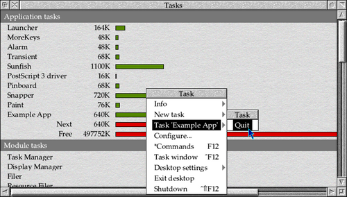 With the initialisation complete, the application can move on to the business of multitasking. RISC OS uses a system of ‘cooperative multitasking’: that is, each application must yield control back to the Wimp as soon as it’s finished its current activity. If an application doesn’t yield for more than a few fractions of a second at a time, the desktop can very quickly become extremely sluggish.