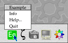 If we put all of the changes together, remembering to update the Makefile so that OBJS includes the new menu file, and compile them, the resulting application should respond to Menu clicks on the iconbar, as seen in Figure 22.2. It’s incomplete, and none of the entries work, but it’s a start!