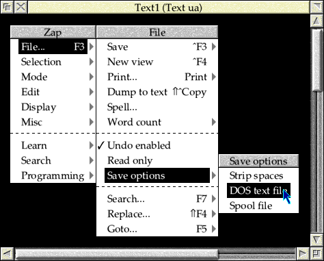 So far, we’ve looked at windows and icons in some detail, but have avoided the other main aspect of the RISC OS desktop. Menus are a central part of the way that a user interacts with the system, and an example can be seen in Figure 22.1.