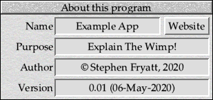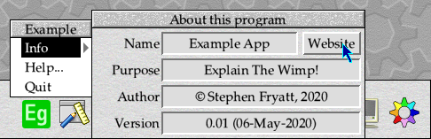 Something that is obviously still missing from our new menu is the program information window, which would normally be expected to link from the Info entry at the top. Fortunately it is fairly easy to add one, so let’s resolve the problem before moving on.