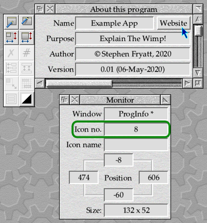This causes us a problem, though. With windows, the ability to add icons using the Wimp_CreateIcon SWI enabled us to ignore the array of icon definitions at the end of the wimp_window structure until we were ready to load the contents in from a template file. This made it possible to define a variable of the wimp_window type and simply ignore the single icon definition that was included in the array at the end.